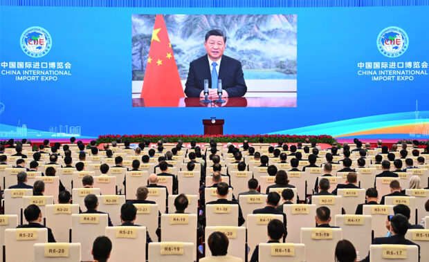 Shanghai: Xi Jinping leverer via video hovedtalen til åbningsceremonien for den årlige messe China International Import Expo, 4. november 2021 [foto: Li Xiang Xinhua/ Xinhua/Ritzau Scanpix]