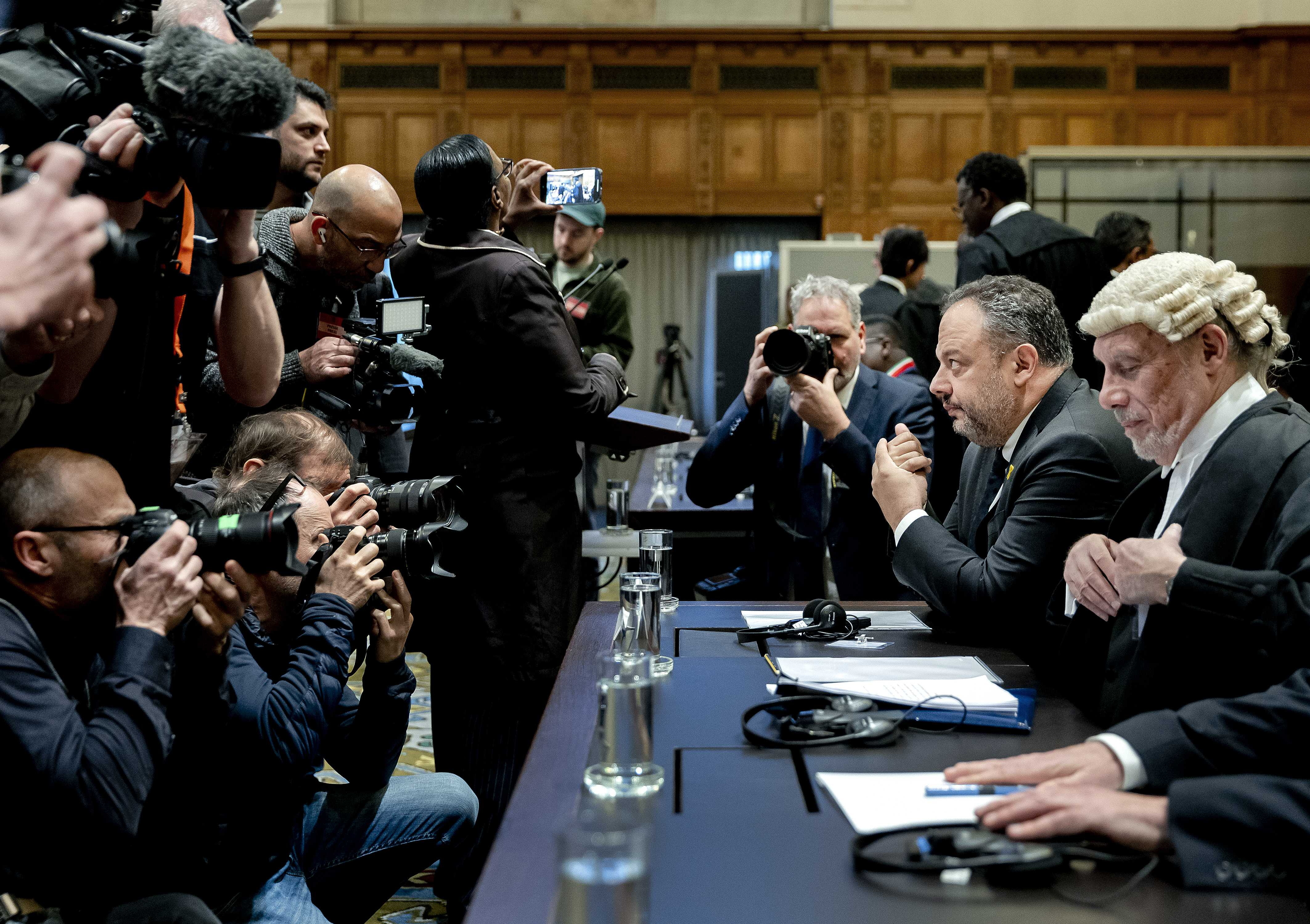 Den Internationale Domstol i Haag, 12. januar 2024: Tal Becker, juridisk rådgiver for det israelske udenrigsministerium, under den indledende del af retssagen [FOTO: Remko De Waal/EPA/Ritzau Scanpix]
